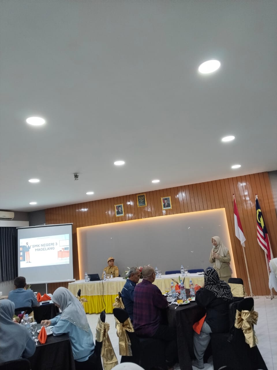 Rombongan tamu dari Malaysia tiba di SMK Negeri 3 Magelang sekitar pukul 09.00 WIB dan disambut hangat oleh Kepala Sekolah beserta jajaran guru serta perwakilan siswa. Acara dilanjutkan dengan presentasi profil sekolah pada pukul 09.15 WIB yang diiringi jamuan snack dan minuman ringan. Dalam sesi ini, pihak SMK Negeri 3 Magelang memaparkan berbagai program unggulan, inovasi pembelajaran, serta prestasi yang telah diraih sekolah.