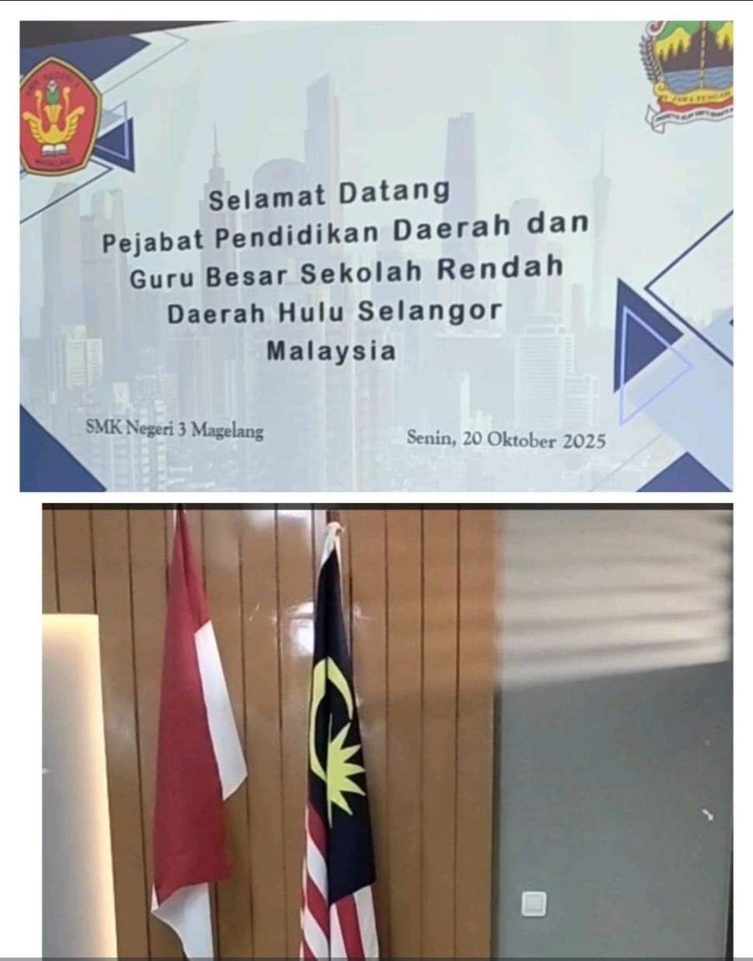 Magelang– SMK Negeri 3 Magelang menerima kunjungan kehormatan dari Persatuan Guru Besar Malaysia Daerah Hulu Selangor pada hari Selasa, 20 Oktober 2025. Kunjungan ini menjadi sarana mempererat hubungan antarpendidik sekaligus ajang berbagi wawasan dalam bidang pendidikan dan pengelolaan sekolah kejuruan.