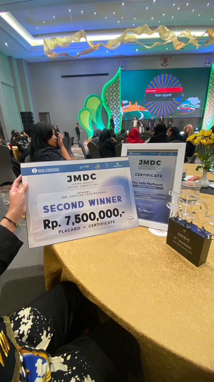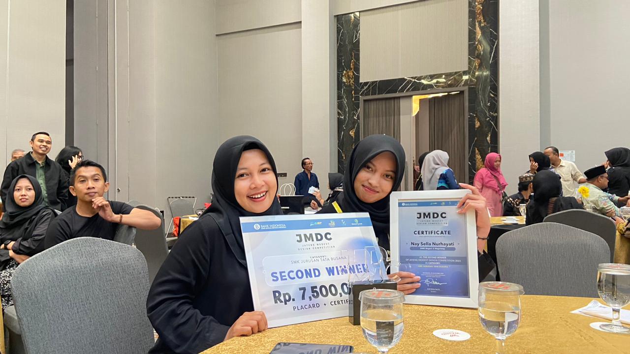 Nay Shella Nurhayati siswa kelas XII Busana 2 SMK Negeri 3 Magelang mengikuti ajang JATENG MODEST DESIGN COMPETITION (JMDC) mendapat predikat Winner 2 yang mampu bersaing dengan ratusan siswa SMK se Jawa Tengah.
